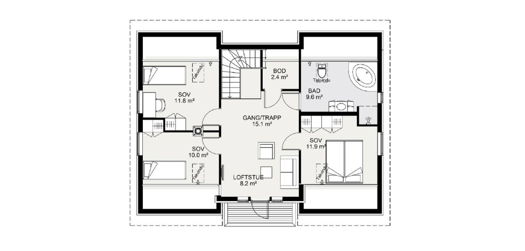 Mesterhus Kine er et populært og tidløst hus preget av symmetri og fine, klassiske detaljer, med alle hovedfunksjoner på ett plan. Dette er et koselig hjem som har vunnet mange hjerter.